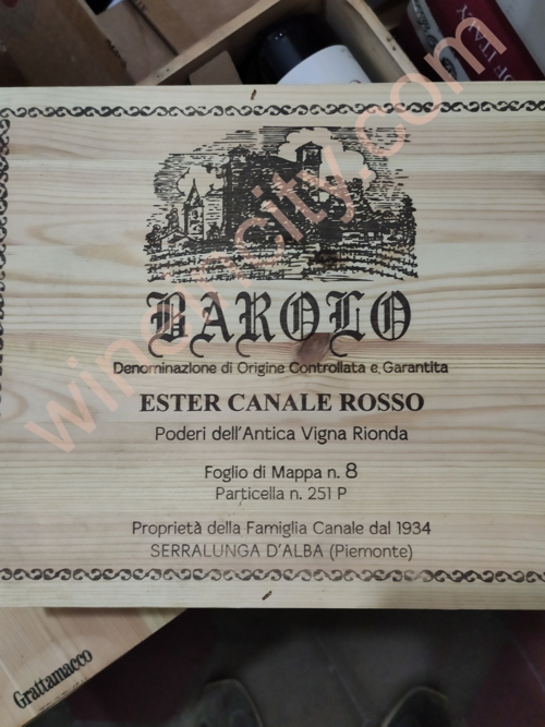 Barolo Ester Canale è un vino rosso prodotto da Giovanni Rosso con le uve di uno storico e celebre cru di Serralunga d’Alba in Piemonte. Questo vino prodotto dal piccolo appezzamento “Vigna Rionda” gode di grande fama per la sua straordinaria concentrazione aromatica dovuta alla favorevole esposizione dei terreni e grazie alle viti di oltre 70 anni d’età. Si presenta con un concentrato di profumi unici; morbide note di confettura di frutti di bosco si fondono con il grezzo odore del tartufo e del cuoio. Al palato è intenso, profondo, con tannini importanti e al contempo eleganti. Un must per veri intenditori.