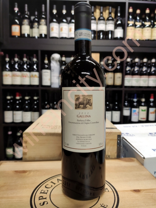 Il Barbera d’Alba “Gallina”, 2012 – vino rosso, prodotto da La Spinetta dal 1996. Vino ottenuto da uve Barbera coltivate nell’area di 9 ettari ad un’altitudine di 270 metri sul livello del mare. L’età media delle viti è di 38 anni. La vendemmia 2012 ha iniziato a raccogliere verso la fine di settembre. Il processo di raccolta ha riguardato anche l’inizio di ottobre. Dopo la raccolta gli acini sono stati sottoposti a fermentazione a temperatura controllata per 6-7 giorni. Segue la fermentazione malolattica in botti di rovere. Successivamente il vino è stato affinato in botti di rovere francese per 16-18 mesi. Altri 6 mesi viene tenuto in vasche di acciaio inox e 3 mesi in bottiglia. Uscita “Gallina” 2012 dopo 26 mesi dall’inizio della vendemmia